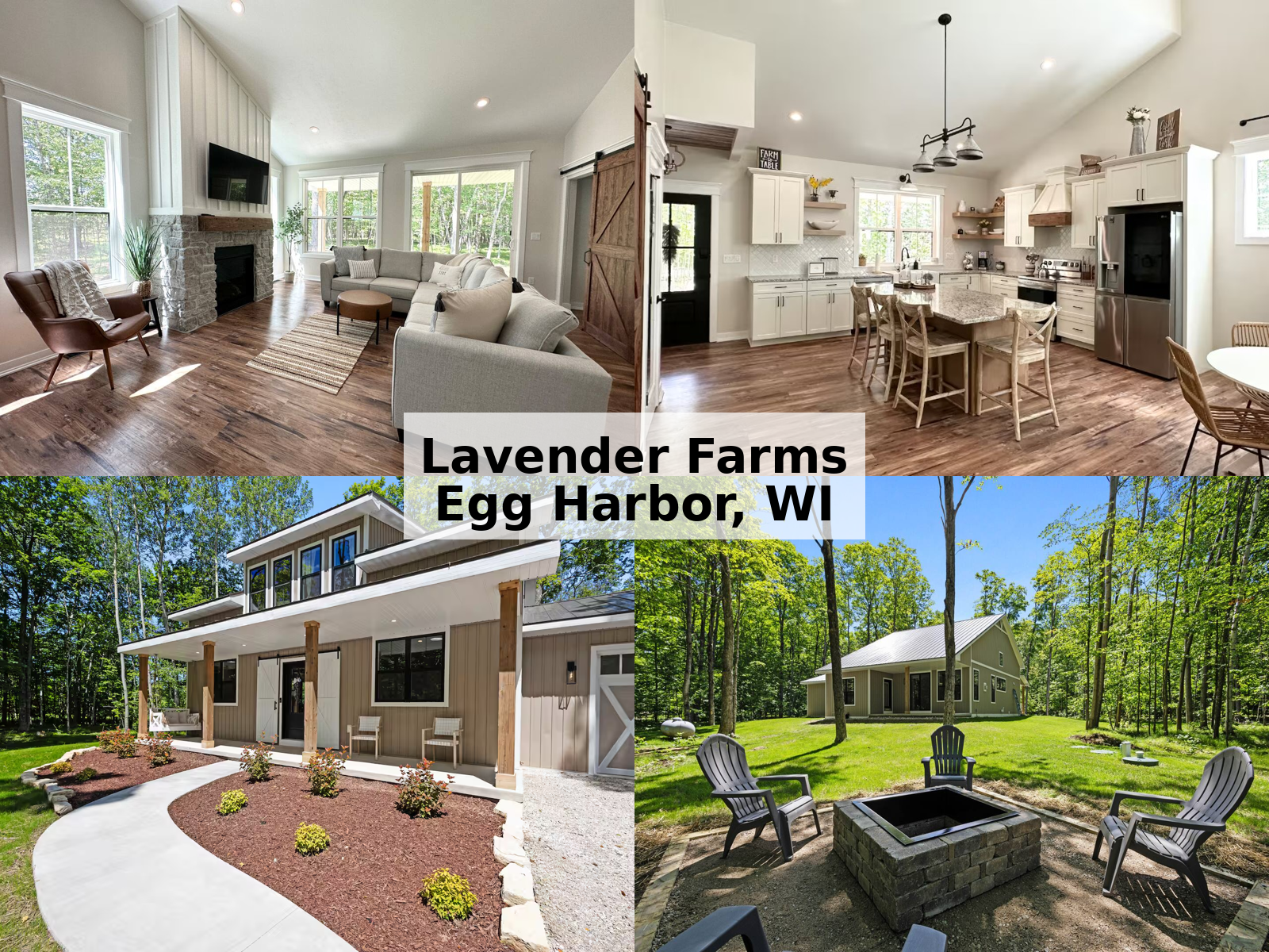 Modern Home Near Downtown Egg Harbor + Fire Pit Welcome to Lavender Farms, a 2024 new construction home in Egg Harbor, WI. Perfect for your Door County getaway! This 3-bedroom, 2-bath home sleeps up to 8 and sits on a private, wooded lot with a stone fire pit. Enjoy less than 3 minutes to downtown Egg Harbor with easy access to the Door County Trolley, plus nearby dining, shops, wineries, beaches and trails. A peaceful retreat with a prime location for exploring Door County.